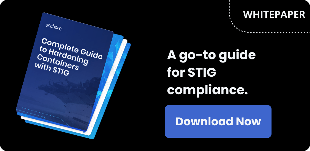 The RPOC ISSM and the Application Owner must work together to determine what SRGs and STIGs to implement. Anchore’s Static STIG Checker tool automates STIG checks on Kubernetes environments and then uploads the results to Anchore Federal through a compliance API. That allows users to leverage additional functionality like reporting and correlating the runtime environment to images that have been analyzed.